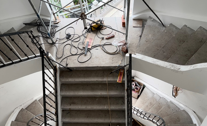 - Bước 8: Đóng trần thạch cao, ốp đá trang trí nhà, cầu thang, bàn bếp…